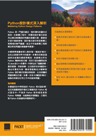 Python 是一門運用廣泛、物件導向的腳本式語言。在軟體工程中,所謂的設計模式即是用以解決軟體設計問題的推薦方案。儘管並非是什麼新事物,設計模式卻仍然是軟體工程領域的熱門議題,並且可作為軟體工程師解決常見問題的便捷參考資源。