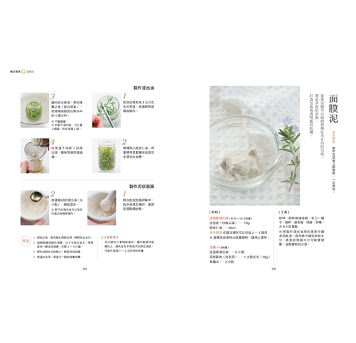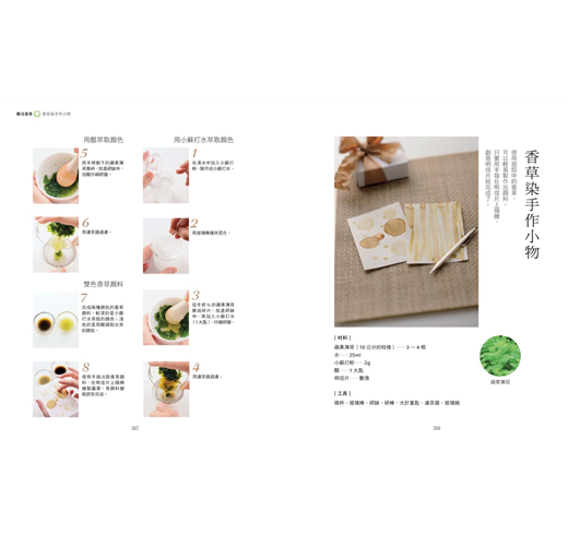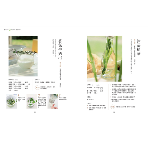 泥狀面膜/蜜蠟乳霜/美容蒸臉/香草去角質/香草香皂/從香草中萃取精油/香草酒浴/東方沐浴精華/溫熱牛奶浴/香草球/什麼是香草球?/移動式防蚊香草吊飾/帶有香味的葉片書籤/香草花束/香草染手帕/卡片裝飾/裝飾蠟燭/水中蠟燭/毛巾/餐具架/餐巾環/香草杯墊/香草束/造型香草花圈