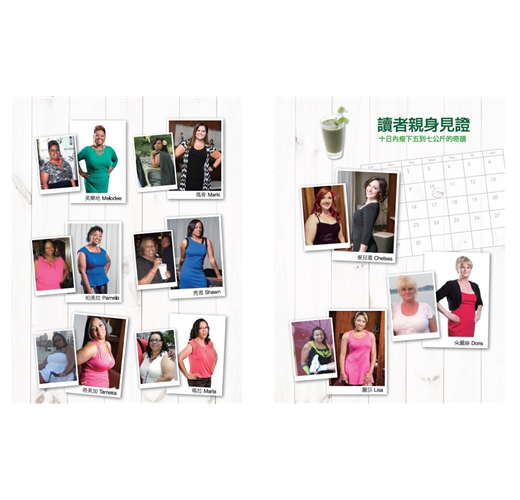 綠色蔬果昔十日排毒療法真是不可思議。今天是第六天,而我瘦了五點五公斤,希望我很快就可擺脫血壓藥的控制了。——潔西卡.L(Jessica L.)