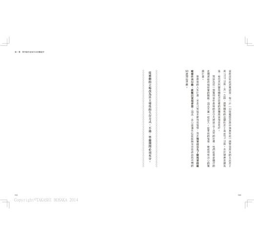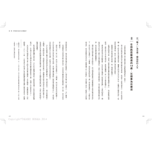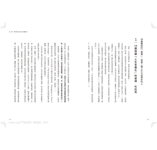 「如果在正當盛年的五十歲感到疲倦或厭煩,不妨改變處理工作的方式,或是開始面對新挑戰,這麼一來,就能夠再度擁有新的成長」。