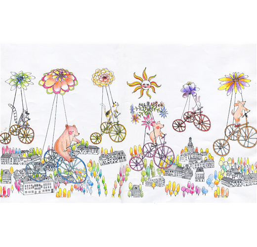 個性隨興又活潑外向的我,總是無法把顏色好好畫在框線內。與個性謹慎穩重的姐姐不同,我總是在戶外學野貓爬到樹上,坐在屋簷上眺望著天空、樹木和花朵。