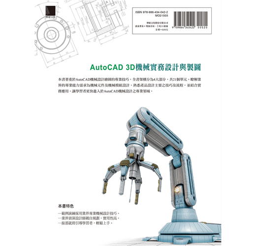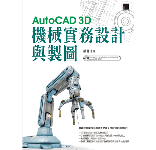 目前坊間AutoCAD參考書籍相當多,但是大部份是以基礎操作為主要內容。鑑於實務案例書籍的缺乏,造成長久以來學習AutoCAD的讀者都僅止於一般操作,對於機械業如何應用AutoCAD設計產品和使用技巧卻是相當缺乏。筆者以從事機械設計23年及AutoCAD教學19年的經驗來撰寫本書。希望能給予想從事機械設計工作的讀者,提供學習參考的書籍,幫助讀者很快的熟悉與了解AutoCAD的實務應用。