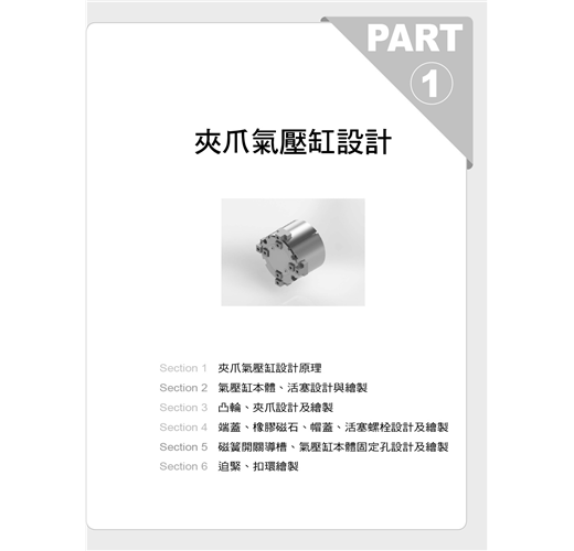 本書共分為四大單元,第一單元是以夾爪氣壓缸設計為主題,由上而下的設計概念,引領讀者們了解機械設計流程的概念以及加強3D繪圖的能力。第二、三單元是以主流的兩種3D轉2D工程圖的方式為主題,讓讀者熟悉轉換工程圖的標準方法。第四單元是以工程標註為主軸,使讀者能熟悉各種工程標註的正確標示,以及在標註時能適當地選擇對的方法。
