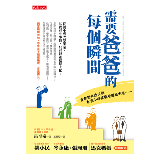 我以這些失敗經驗中得到的體會為基礎,加上和孩子十幾年間的相處過程,坦白的寫出此書。雖然我親身經歷、碰撞出來的答案,未必對每個爸爸都適用,但最重要的是,當孩子迫切需要支援的時候,爸爸要察覺到並且幫助、陪伴孩子。