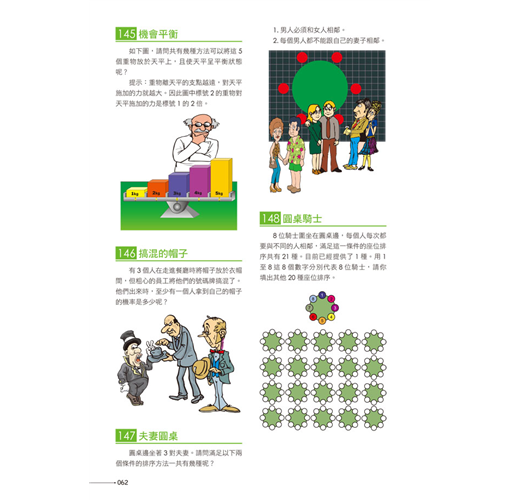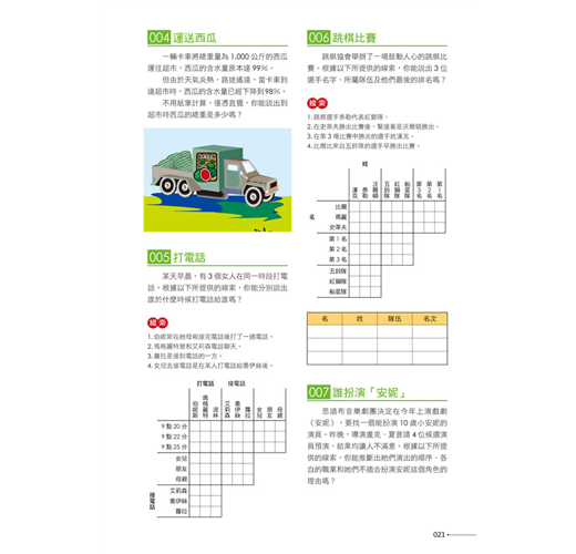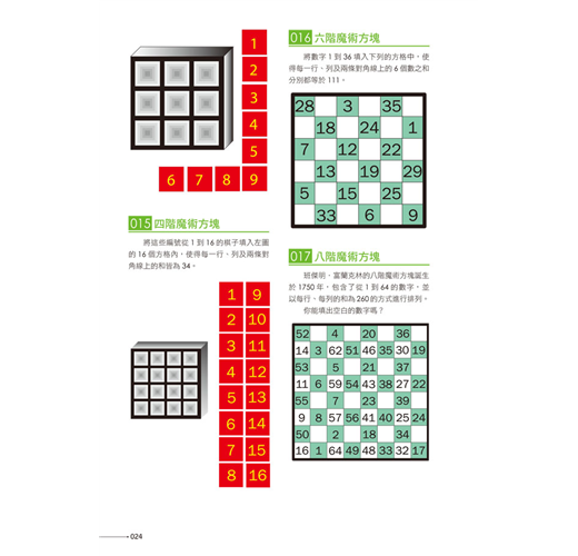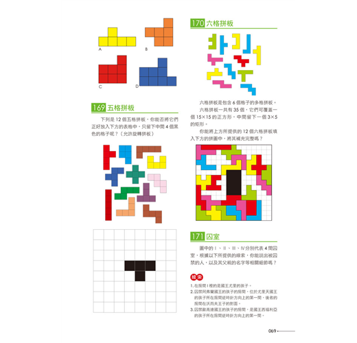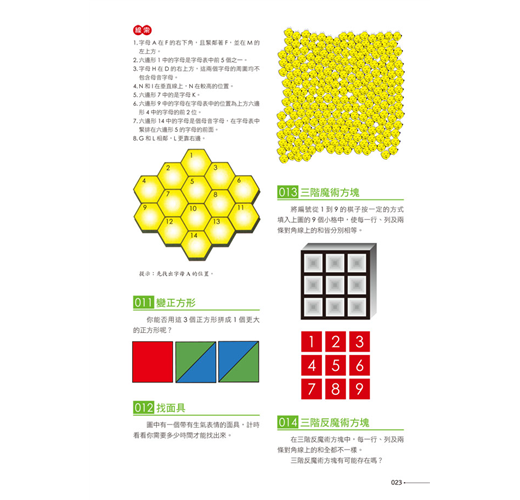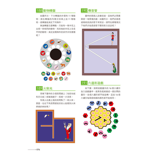 本書適合各種年齡層的人,不管是中老年人還是青少年,都可以藉由挑戰本書的題目,啟發多元智能,突破固有的思維模式,提升智力、享受樂趣!