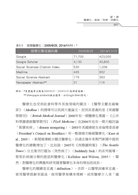 雖然搜尋結果僅是概略指標(見表1.1),但至少對這個主題的關注和相關著作的數目,提供一個大致概念。僅就社會學來說有數十篇醫療化的個案, 相對應的文獻可以籠統稱為「醫療化命題」(medicalization thesis)(Ballard and Elston, 2005),或甚至是「醫療化理論」(medicalization theory)(Williams and Calnan, 1996)。