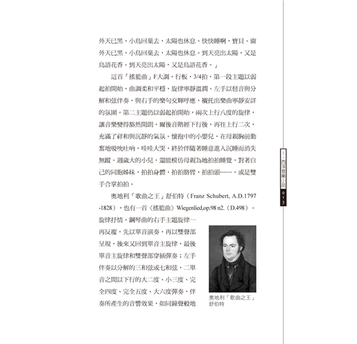 這本書融入了筆者的育兒生活記事,也加入了幼兒律動的豐富天地,西洋音樂小品中的律動元素,使得年僅周歲的幼兒,也能感動地很自然地隨著律動的音符,前後前後、左右左右地擺動他(她)們小小的身軀,聆聽著這多首經典的西洋音樂小品。