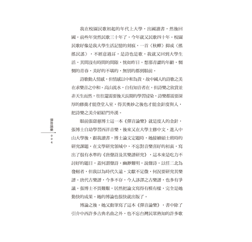 今筆者出版《彈音論樂——聆聽律動的音符》一書,藉由「音樂文學」的創作,體認不論西洋音樂小品、中國音樂名曲,抑或台灣歌謠名曲,都有重新提起與再次咀嚼的必要,為其提出最原創與最新的文化價值與時代意義。