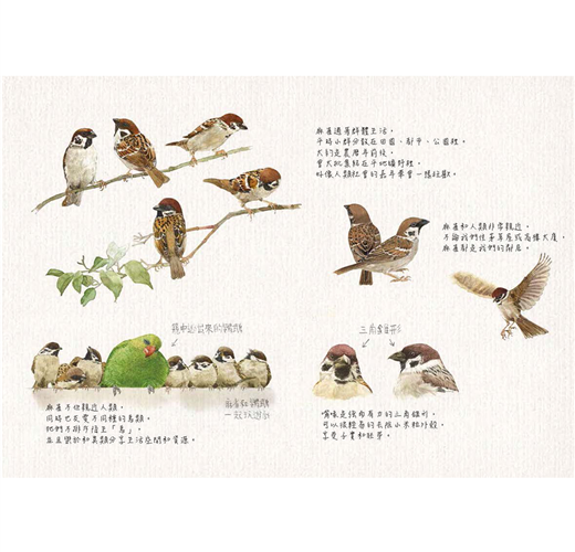 兩本書中,有19個單頁或跨頁的野鳥插畫,是劉伯樂細心描繪的精細又生動的插畫,可以讓小朋友細心地看,然後找出那幾幅是畫出野鳥的姿態,野鳥在空中飛翔、打架等等有趣的畫面,這是提升小朋友欣賞插畫之美的好機會。