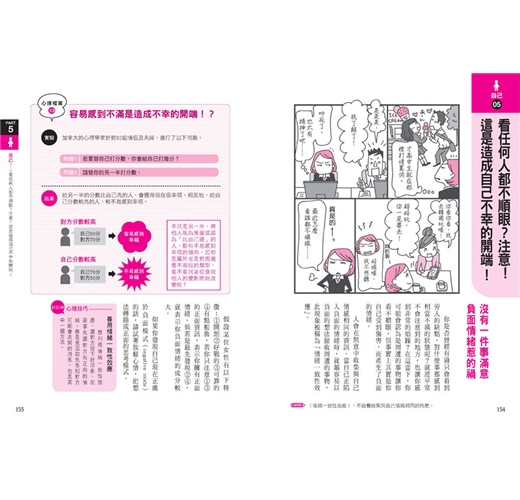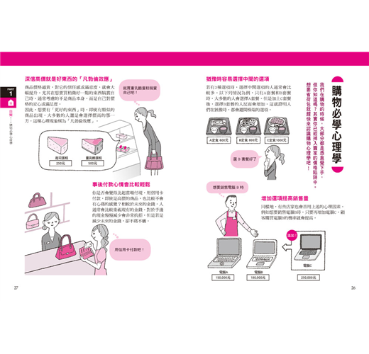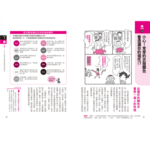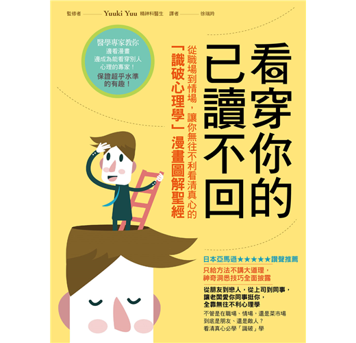 全書共有65個常見的狀況漫畫劇及心理學知識說明情境,並以一個表格整合重要資訊。讀者可以用最輕鬆的態度,及最短的時間掌握全書內容,並依符合自已的情境內容,輕鬆閱讀並吸收,讓你成為洞察人心的心理學大師!