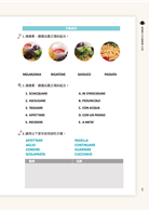 食材以合照呈現,方便讀者一看就知道需要準備什麼食材,而義中對照的食材說明,搭配照片,更能加深對義大利語詞彙的印象,只要多做幾道菜,就能輕輕鬆鬆地記住常出現食材的義大利語。