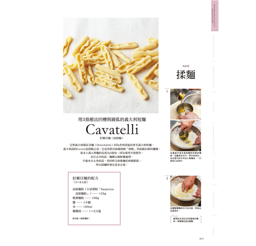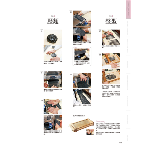 (3)圖文講解每個製麵步驟;穿插提供主廚特別分享的「製麵重點、義大利麵烹煮訣竅」。