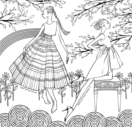 讓真正的服裝,藉由我的指尖,如同魔法般重獲新生的造型著色!是否曾經想像過呢?奧黛麗赫本在〈龍鳳配〉(Sabrina)中,穿著紀梵希的優雅洋裝、傳奇名模崔姬身上的直線條紋與幾何圖案迷你裙、Burberry的風衣、香奈兒的2.55經典包款以及菲拉格慕繫著蝴蝶結的Vara鞋……通通都能隨我心所欲地替它們上色。雖然現在沒有辦法立刻買下要價數百萬的柏金包,卻能自由地塗鴉上色,不是嗎?請將這個單調的時尚世界,染上專屬於自我性格的色彩吧!像個設計師似地。