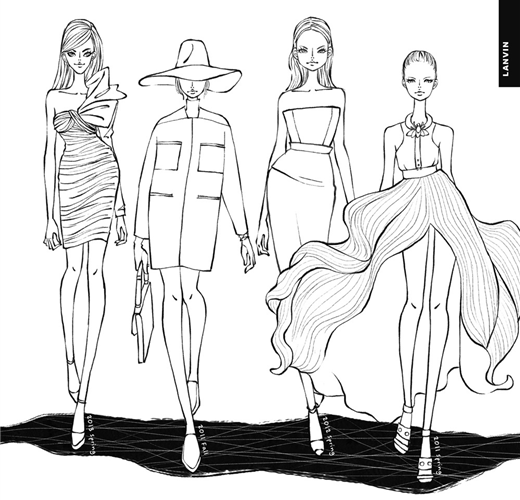 .利用網路找出所有真實存在的服裝後,依樣畫葫蘆地完成著色,或者憑藉著自己的想像力,繪製出專屬於自己風格的服裝後,再和設計師實際設計出來的顏色比較看看。