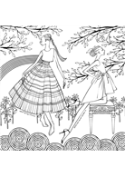 .使用單色替沒有花紋的衣服上色當然很好,不過也可以試著自己替衣服創造花紋,沒有非得執著於按照圖畫線條的必要。盡情發揮創意,替服飾增添新穎的設計。替書中服裝上色的同時,各位正正就是在擔任一大品牌的設計師。