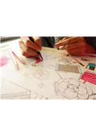 .最不可或缺的工具就是彩色鉛筆了。依據使用水性色鉛筆或油性色鉛筆,能讓作品在完成後出現不同的感覺。如果想要呈現素淡、朦朧的感覺,可以選用水性色鉛筆;如果想要呈現鮮明、濃烈的感覺,可以選用油性色鉛筆。除了色鉛筆之外,也可以利用麥克筆、顏料、墨水、簽字筆、粉筆、蠟筆等,選擇適合自己的材料進行著色,便能完成與眾不同的獨有作品。