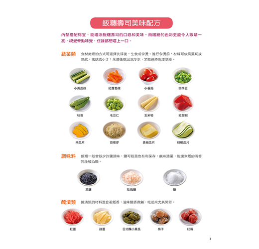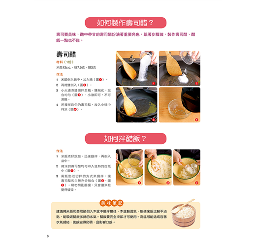 專業老師撰寫,從基礎到變化,圖文示範,製作壽司醋、拌醋飯一點也不難,飯糰壽司種類多樣,適合每個人口味,口感零距離,接受度高!