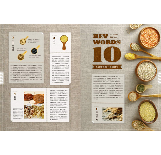 營養師說,每天至少都要吃1/3的全穀類,一份堅果好食物;生機飲食家也說,粗糧可以增元補氣,提供人體所需的微量元素。碧昂絲用藜麥減肥、台灣紅藜紅到國際、小米成為歐美最時興的食材之一,在追求營養均衡,尋找真食物的需求下,全世界掀起了一股雜糧風,有點像是回到阿公阿嬤時代裡的糙米飯、燕麥粥,不過這次,我們吃得更講究、更多元、也更有意思。