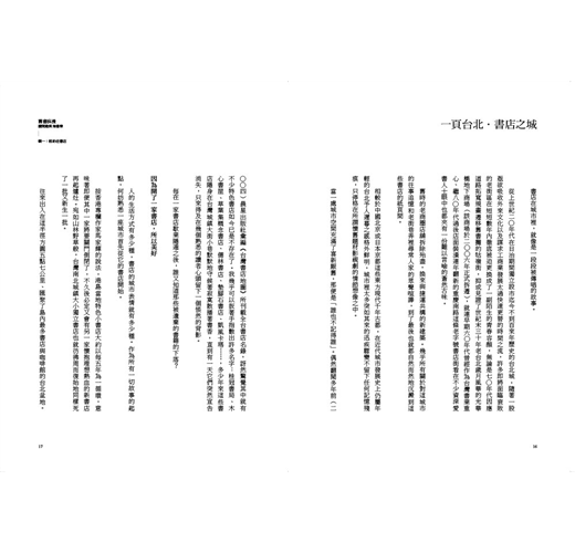 往來出入在這半徑方圓五點七公里、匯聚了島內最多書店與咖啡館的台北盆地。儘管最近幾年台灣書業出版界盛傳「景氣寒冬」之說日益甚囂塵上,城市裡總還是不乏有人無畏現實殘酷而不斷前仆後繼地投入「開書店」往火坑裡去。