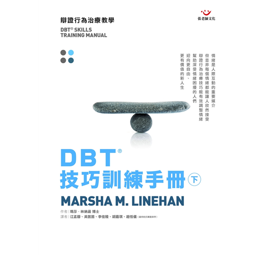 在自學階段我們研讀的兩本書籍,其中之一就是本書的第一版(一九九三年出版)及林納涵教授的另一本教科書《邊緣性人格疾患的認知行為治療》(Cognitive-Behavioral Treatment for Borderline Personality Disorder,第二版手冊中也常建議讀者參閱此書)。三年後,我們得到馬偕醫院經費支持並偕同台灣身心關懷協會募款贊助,於二○○九年至二○一○年期間力邀林納涵教授本人及其團隊凱瑟琳‧考斯藍(Kathryn Korslund)博士三度來台灣,教授並督導馬偕醫院的DBT團隊。當時林納涵教授即預告本書的第二版將以全新面貌問世,且新版的編纂已接近完稿,馬偕醫院DBT團隊同仁莫不深切期盼本書的出版,因此,幾年前我就積極聯絡張老師文化公司俞總編輯,極力促成出版此書的中文翻譯,沒想到這一等就是五年之久。然而,當我看到此書原著時,方深刻體會到林納涵教授在出版本書的嚴謹態度、更可感受到她對病患的同理和尊重,及她在新書撰寫過程中亟欲傾囊傳授畢生臨床經驗的心意。新版的這兩冊書籍真的是她歷經數十年所累積的經驗傳承。當我閱讀這兩本書時,林納涵教授在台灣親自傾囊相授馬偕團隊各種DBT技巧時的景象,歷歷在目。