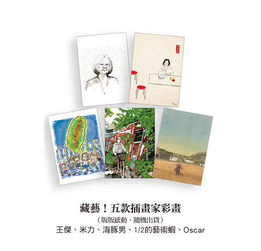 *藏藝!王傑、海豚男、米力、1/2的藝術蝦、Oscar五位插畫家,畫出眼中的蔡英文,與對台灣的願景。五款典藏版本,版版感動,隨機出貨!