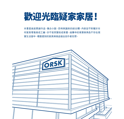 恐怖小說《歡迎光臨疑家家居》基本上也發想自類似的概念,把美國社會的內在恐懼連結到可被體現的資本社會實況。這故事的空間比較特別,發生在一個模擬「宜家」(IKEA)的居家賣場。此類賣場的商品價位低廉,品質普通;但是在形象包裝上卻講求時尚,年輕,快樂,家庭。賣場內的服務人員乾淨又親切,裡面還有賣肉丸的餐廳等等,再加上異國風味的北歐字母……逛過「宜家」的每個人(應該是所有人吧)對這美好的場景都熟悉到不行了吧!