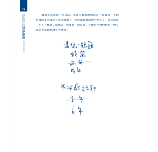 何敬堯(小說家、藝術新秀文學類得主):太陽照耀人類,陰影卻更翳闇謎亂,誰能逃出文明秩序日復一日的魔掌?《歡迎光臨疑家家居》推開了當代哥德恐怖小說的嶄新門扉,門後是失衡的日常、崩潰的祕密、魔物的監獄;迷惑者,醒來吧!讓ORSK典獄長來教導生命的偉大真諦!