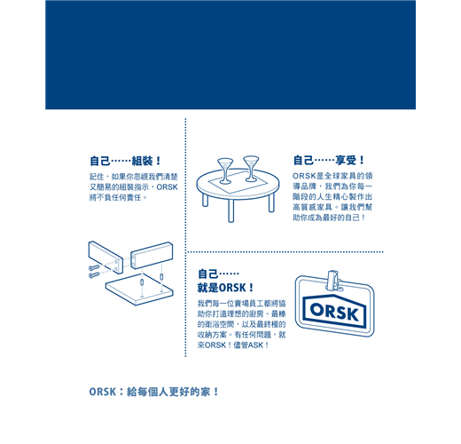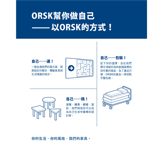 ORSK是全美連鎖的北歐風家具大型商場,提供設計精美卻比IKEA更便宜的生活提案,以前瞻性的廣告詞承諾要「給每個人更好的生活」,尤其是ORSK的股東們。每一年,股東跋涉到威斯康辛州密爾瓦基的公司總部,去了解這間仿冒IKEA的連鎖賣場又賺進多少綠花花的鈔票。ORSK承諾提供「顧客所需的每件物品」,在他們人生中的每個階段,從Balsak搖籃到Gustevol搖椅,樣樣齊全。唯一沒賣的只有棺材,至少目前還沒賣。