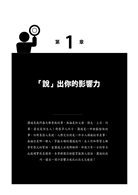 溝通是我們每天都要做的事,無論是和父母、朋友、上司、同事,甚至是陌生人!對很多人而言,溝通是一件輕鬆愉快的事,但對某些人來說,人際交往則是一件令人頭痛的苦差事。無論你是哪一種人,掌握正確的溝通技巧,在工作和學習上都會有很大的幫助。當溝通上出現障礙時,即使只有一方的努力也能確實改善關係。本章將讓你輕鬆掌握與人談話、溝通的技巧,讓你一開口影響力就比以往大大超前!