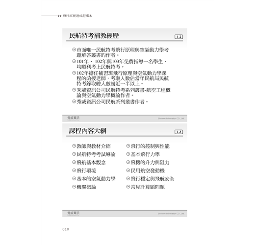 ★市面上第一本以飛行原理數位課程簡報(ppt)所編製而成的教學教材