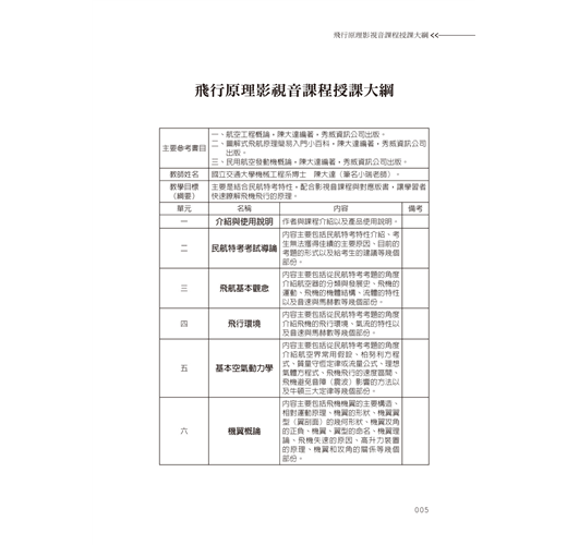 四、 因此,個人依據學生與讀者的建議,以民航特考「飛行原理」考古題為依據編寫本套數位課程教材。...