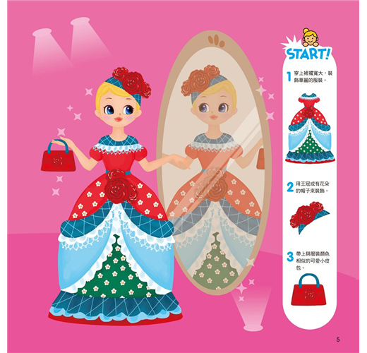 造型獨特、圖案可愛的服裝配件,一共有182種不同風格的公主服飾,吸引孩子注意力,不用剪刀就可以做出的手工勞作,完成後還可以佈置房間喔!
