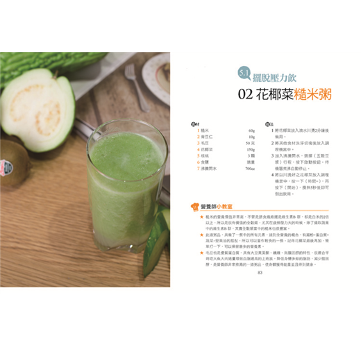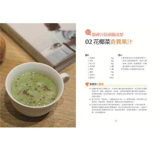 臺安醫院營養師劉怡里針對不同年齡層會發生的問題,深入淺出地解說,提出食癒飲品、簡單料理:蔬果汁、堅果飲、熱豆漿、濃湯、麵團……3-5分鐘,以最簡單的步驟全部搞定!一本在手,輕鬆照顧0-100歲的健康大小問題。
