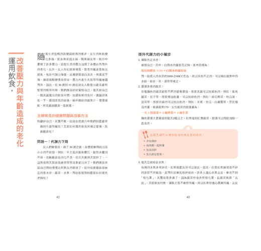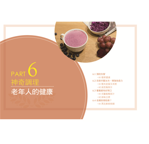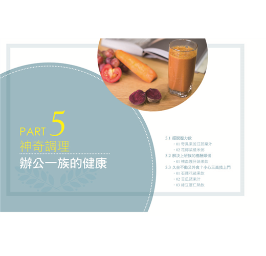 ★ 一家人的健康全包了:家裡每個人都各有不同症狀及健康狀態,好難為他們準備飲食?別擔心!本書從嬰兒的副食品、痘痘、發育等青少年問題、家庭主婦的常見症狀、上班族和勞動族的問題……等,全都有對應的飲品、食譜。