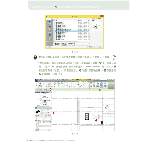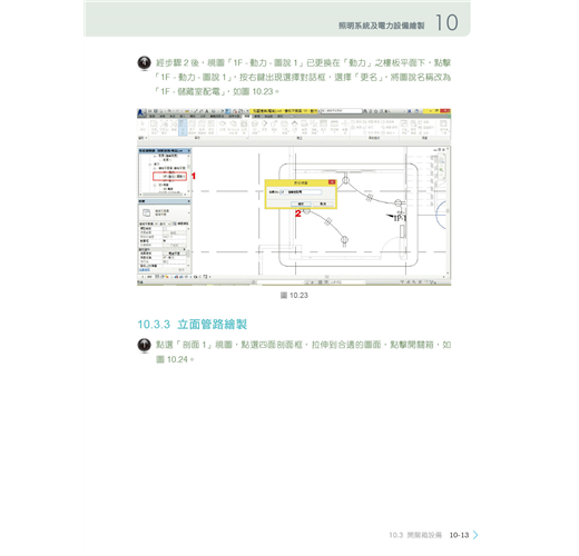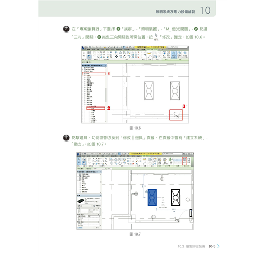 2.以專案方式貫穿三項軟體,設計專案中建築、機電、結構(鋼筋)之圖說、軟體間設定,以及轉換應用。繪圖程序及指令操作則是以現場人員常用作業方式為主,簡化流程、強化練習成果。