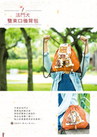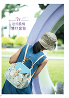 濃濃學院風帆布款後背包;適合型男的率性、帥氣運動休閒的簡約風格,藏著都會女子最愛的浪漫、典雅款雙口金後背包;及適合手牽手一起出遊帶著俏皮的親子包、情侶包,可靈活移動在城市間輕巧又有多層次背法設計的多用包款。當然也為辛苦的媽媽設計出各具獨立空間的媽媽包。