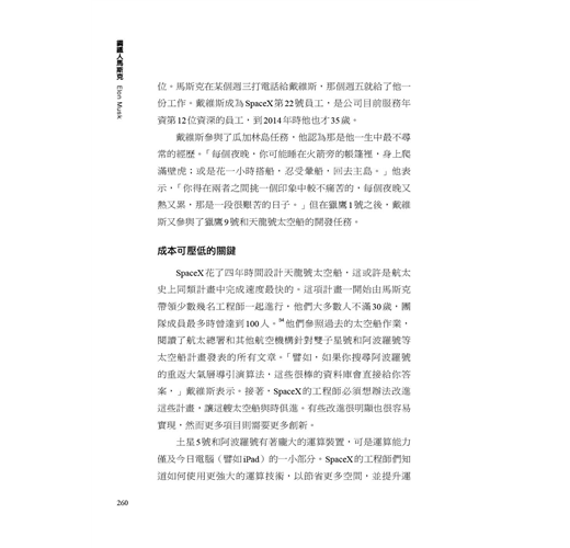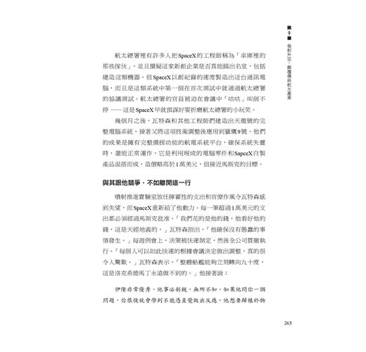 而這,就是當馬斯克與范思兩道生命交錯,在本書裡迸發出的西方哲學家皇帝光芒。當這些人看到一件事情對於整個文明發展是重要的,他們就奮不顧身去完成它,雖千萬人吾往矣。