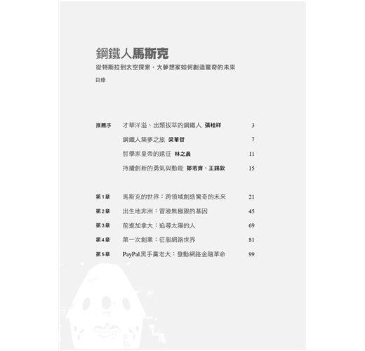 向馬斯克學狂想與實做,掌握新思潮,了解這一代創業家、企業家缺少什麼?哪一種產業、行業、能力最被低估?工作者如何面對新時代?你也可以成為主導自己未來的鋼鐵人: