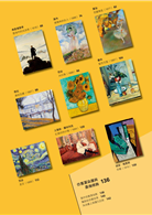 卡拉瓦喬:水果籃(1596)/維梅爾:戴珍珠耳環的少女(1667)/維拉斯奎茲:鏡前的維納斯(1651)/魯本斯:三美神(1635)/威廉.透納:威尼斯大運河(1840)/弗里德里希:雲海中的流浪者(1818)/莫內:撐陽傘的女人(1886)/竇加:芭蕾舞星(1877)/秀拉:庫伯瓦橋(1887)/梵谷:向日葵(1888)/塞尚:藍色花瓶(1887)/梵谷:星空(1889)/土魯斯.羅特列克:紅磨坊的沙龍(1894)/胡安.格里斯:早餐(1915)