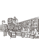 買自動鉛筆盒、紙娃娃和明星閃卡的文具店;