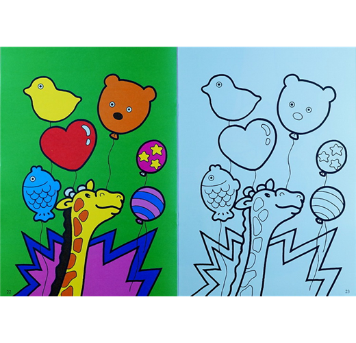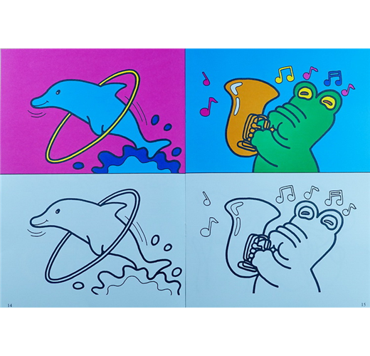 讓孩子先參考彩色圖案,然後再拿彩色筆分別為動物們塗上美麗的顏色,好讓牠們的表演更生動出色,如果孩子另有自己的著色主意,沒關係,就儘情發揮吧!