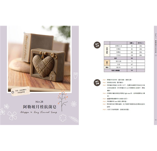 謝謝木馬文化與廣大朋友們對孟孟的支持,第一本《超想學會的手工皂》一書當中,分享了許多生活創意與配方的搭配運用,而第二本書對於油脂搭配與周邊素材作了更進一步的延伸運用。手工皂不是具有療效的清潔用品,只是因為它的單純與樸實,與充斥化學物質的現代方便社會形成了強烈的對比,每天合成洗劑進入人體途徑是無法想像的多又多,相對手工皂不但保留且含有豐富的天然植物養分,提供皮膚適當的清潔與滋潤,恢復肌膚正常的代謝,肌膚自然而然問題就減少了。天然冷製手工皂,相對比起市售的清潔用品確實更溫和,更不用擔心化學添加物在肌膚上的殘留,就讓這樣樸實的小物跟著製皂的雙手一起恣意揮灑。