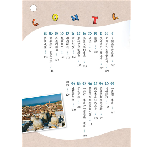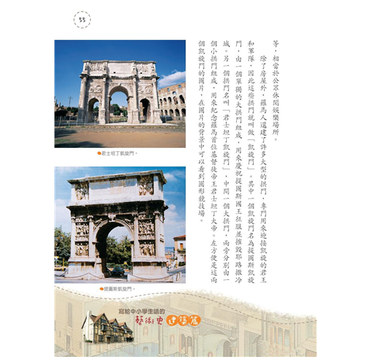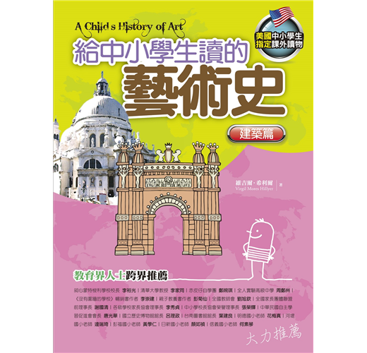 翻開書頁,你可以輕鬆的在繪畫篇中認識繪畫名家、名畫;在雕塑篇中親近雕塑大師,並了解創作背後的故事;在建築篇中穿梭時空,從古老的房子,遨遊到現代的摩天大樓。你會發現,原來閱讀藝術史,竟然能如此的興味盎然。