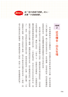 但這也不是長久之計,我試著轉變想法,試著去看她的優點,有一次她又在碎念逗號跟頓號的差別時,我插話說:「您好專業哦,是中文系的嗎?」這時我竟看到她露出百年難得一見的驕傲笑容說:「當然啊!」打蛇隨棍上,我繼續追問她該怎麼用字遣詞最恰當,主管突然覺得我變得很「受教」,開始給我明確的建議,對於她的教導,我也大力表達感謝。漸漸地,主管的態度愈來愈和緩,我們的關係不再像以前那樣,偶爾還能閒聊家常。