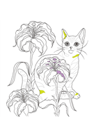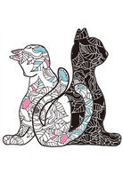 貓咪們巧妙地融入華麗的大範圍背景裡,上色後更顯活靈活現。