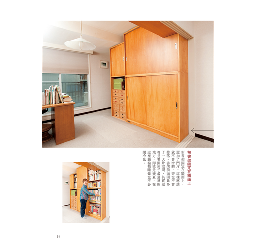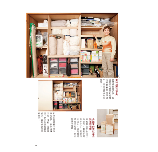 ●給漸感體力不足的你,看著幾十坪大一個家,回憶遍布各處,該怎麼辦?用不到的東西別再留戀,打包送人;把太高的櫃子改裝得低一點,不必爬上爬下,免得腰痛;量力而為,是你熟齡生活的第一準則。