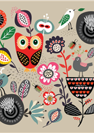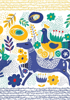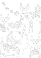 原野上,有美麗的孔雀、跳著舞的馬兒、艷麗的火鳥、梅花鹿、仙人掌、兔子、喜鵲。