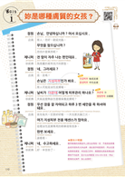 各章最後皆附上女孩們在韓國一定會用到的實用單句會話,包括「交通篇」、「住宿篇」、「餐飲篇」、「美容篇」、「購物篇」、「娛樂篇」及「樂園篇」。