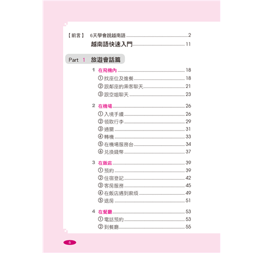 本書是專為讀者量身訂做的商務、旅遊隨身書,為了滿足讀者學習越南語的需求,精選情境會話和必備單字,句句實用,每句越南語和單字都有中文注音,會中文就能能說越南語,易學易懂,即學即用。可以馬上套用,看中文或拼音,就能立刻說越南語,完全沒有學習的負擔,開口流利又道地,輕鬆學好越南語。幫助讀者快速學習,達到溝通目的。