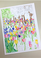 ◆花園裡有黃水仙、玫瑰、向日葵、罌粟花、鳶尾花、金盞花、天竺葵、紫藤、鬱金香等數十種花卉爭相競豔,每一幅都極富詩意又有想像空間!
